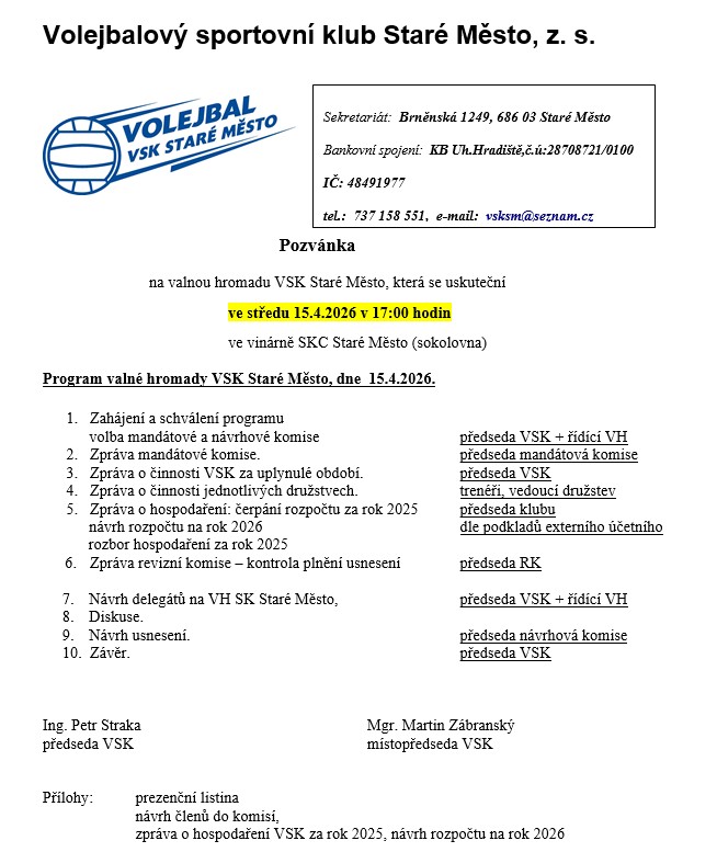 Identifikace správce: Volejbalový sportovní klub Staré Město, z s., Brněnská 1249, 68603 Staré Město, IČ: 48491977.